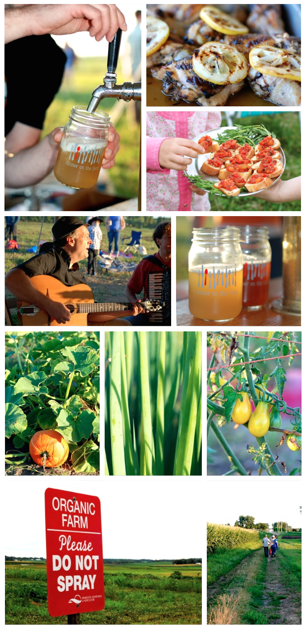 That’s how my partner Christopher, daughter Claire and I spent a wonderful Sunday evening. Our friends and neighbors Keith, AJ and Molly Herrmann (of Tastebud/Kitchen in the Market) were along for the ride. Our kids ran circles around us asking where the cows were and when could we go on the hayride? My daughter, decked out in my old cowgirl shirt and boots, and AJ, sporting a snazzy black cowboy hat, ate fresh focaccia while the adults chatted with Bossy Acres’ partners Elizabeth Millard and Karla Pankow. Standing in an open field with a tomato bruschetta in one hand (tomato picked not a 100ft from me) and a mason jar full of local beer in the other (brewed in nearby Minneapolis), I was in heaven. Sounds of a swinging live band drifted through the early evening air along with a few hungry mosquitos. Local just doesn’t get much better than this.