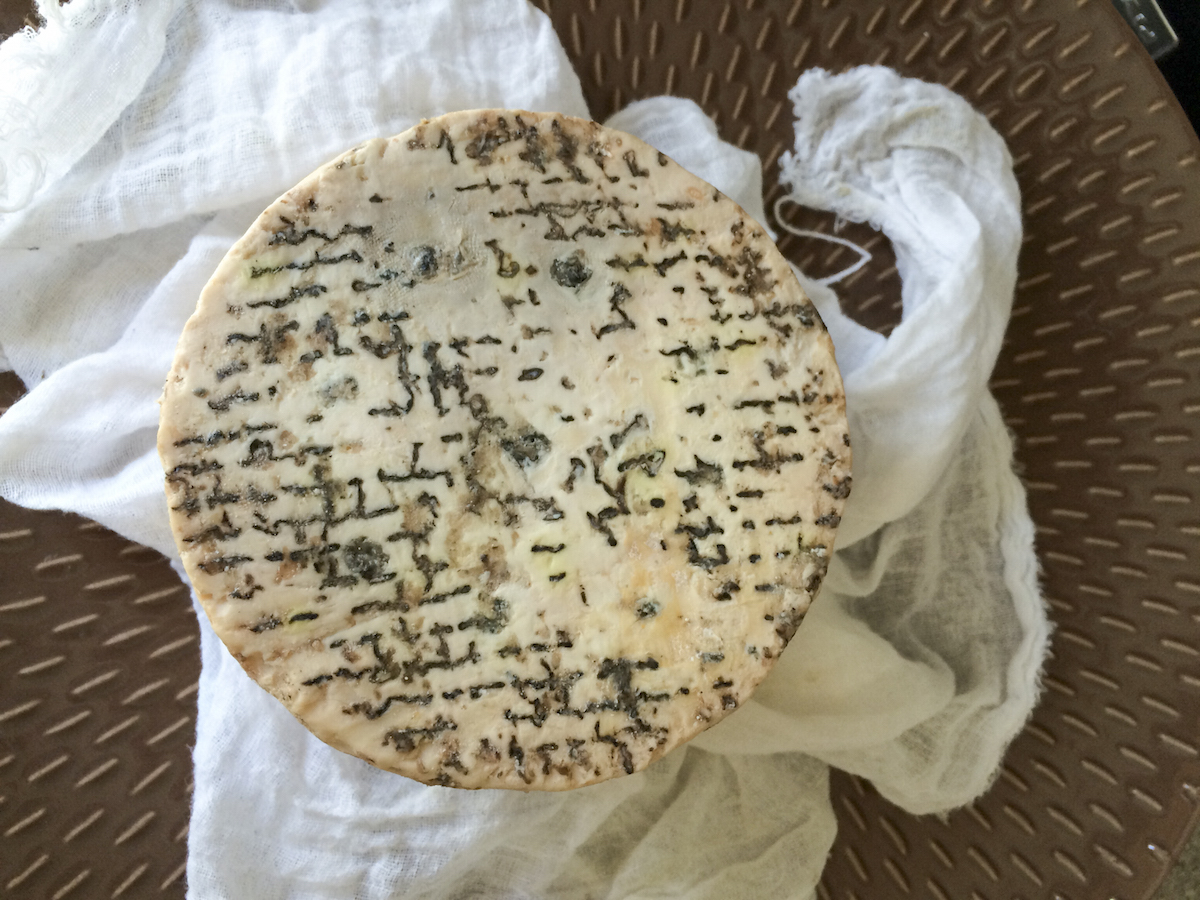 After a month you’ll see both blue, red and possibly white mold on the surface of the cheese. With a clean cake frosting spatula, gently scrape all the mold off the cheese and return it to the bucket cave. Scrape the mold at least once a month. After 2.5 months, scrape the cheese a final time and wrap tightly in cheese wrap or foil. Place in the bottom of the refrigerator. The cheese will continue to age. For a mild cheese, eat immediately. For a stronger cheese, let age for 2+ more months, up to 6 months more.